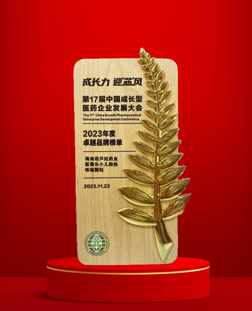 11月22日至25日,由中国医药物资协会和厦门市人民政府主办的第17届中国成长型医药企业发展大会在厦门拉开帷幕。会上,J9游会药业集团党委书记、董事长刘景萍获得“金叶奖·2023年度医药行业风云人物奖”,集团旗下产品新费乐®小儿肺热咳喘颗粒荣膺“2023年度卓越品牌奖”。